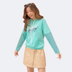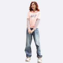 👉 Hoodie Nữ tay dài vải vảy cá, có nón, tay dài phối sọc, hình in cá tính làm tăng sự trẻ trung, nhí nhảnh và năng động cho các bạn nữ