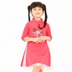 👉 Áo dài cách điệu tay lỡ thêu cho bé mặc rất dể thương
