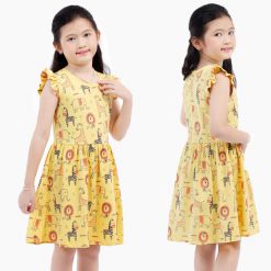 Đầm bé gái tay cánh tiên in tràn thân – 1485