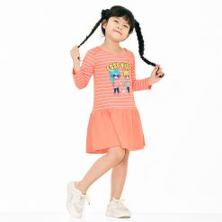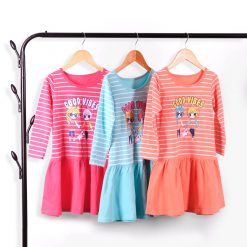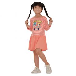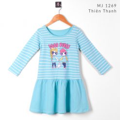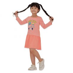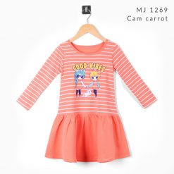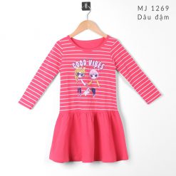 Đầm Thun Bé Gái Tay Dài In Sọc- 1269
